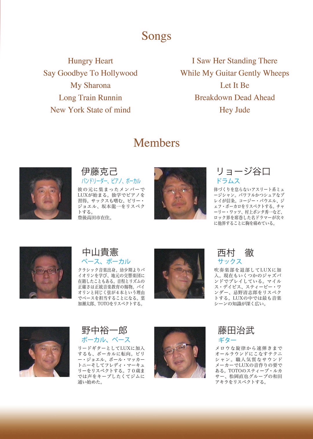 出演者 LUX 風鈴堂 松五郎ブルースバンド OPEN 00:00 / START 17:30